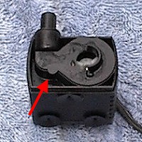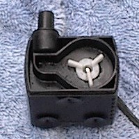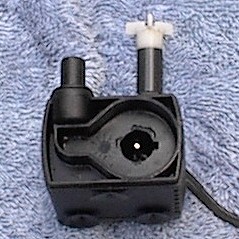 | The iii white fins of the impeller. Gently lift out, be aware there is a magnet below and this tin can make it a petty harder to lift out. It won't skid out simply past tipping information technology upside down. Handle advisedly, damaging the fins of the impeller or the shaft the magnet spins on will throw things out of rest, crusade vibration and ultimately make the fountain noisy and reduce the life of the pump. |